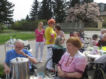 Die BewohnerInnen und das Team der Pflege 2 konnten den Sommerbeginn kaum abwarten und haben den ersten warmen Tag gleich für eine gemütliche Runde im Garten genutzt.