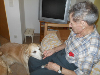 Regelmäßig können sich unsere Bewohner und Bewohnerinnen über den Besuch von Herrn Anton Ensdorfer (Rettungshunde Niederösterreich)mit seinen Golden Retriever Hündinnen Eila und Tiffany freuen.