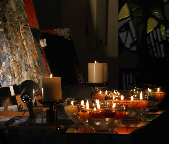 Jede dieser Feiern steht unter einem bestimmten Leitgedanken. Inspiriert von einem Bild des Bewohners und Künstlers Friedrich Martin Seitz habe ich heuer "bewusst leben" gewählt. Auf diesem Bild ist ein alter Schalter draufgeklebt. Prof. Seitz schrieb auf die Einladungen, welche an die Angehörigen geschickt wurden: "Schalter gibt es viele. Doch nur Gott allein kann an deinem Ziele dir Vollender sein. Legt zu deiner Stunde deinen Schalter um aus des Lebens Runde in sein Heiligtum. Und in unserem tiefsten Innern wissen wir, dass du lebst im Frieden, ewig für und für."