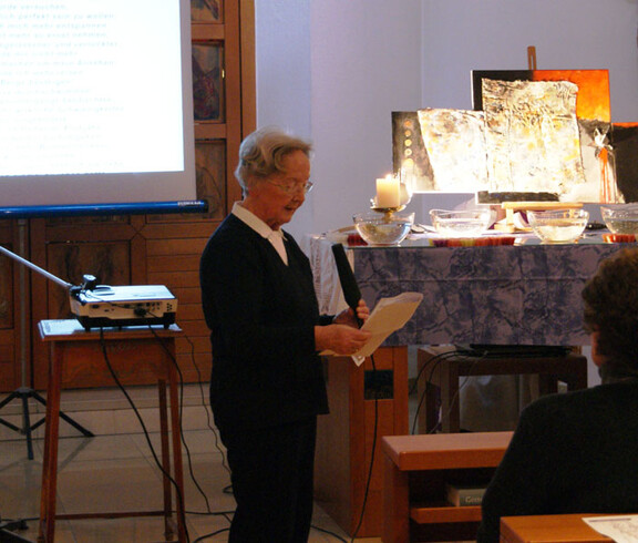 Gleich zu Beginn, so haben wir vereinbart, sollte unser lieber Professor, wie er liebevoll im ganzen Haus genannt wurde, das Bild näher erklären. - Doch dazu kam es nicht. Denn am Vorabend brach er am Grab seiner Frau tot zusammen. - Stattdessen sang Sr. Sabrina sein Lieblingslied.