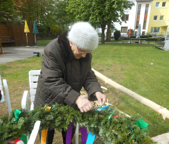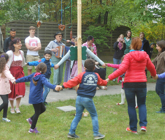 Am Nachmittag des 30. April fand im Garten unseres Hauses das Maibaumfest statt. Fleißige Hände waren schon am Tag zuvor beim Kranzbinden und Schmücken dabei. Unter kräftigem Applaus wurde der Maibaum den STR Peter Krammer sponserte aufgestellt. Zur Ziehharmonikamusik von Michael Böswarth wurde geschunkelt, gesungen und mit Kindern aus dem Lerncafe um den Maibaum getanzt. Die zünftige Brezenjause fand aufgrund des wechselhaften Wetters im Anschluss auf den Stationen statt.