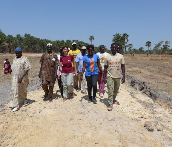 In der Gemeinde Oulampane in der Küstenregion Ziguinchor sind die Einwohner*innen vor allem Reisbäuer*innen als auch sesshafte Viehzüchter*innen. Kühe werden hauptsächlich zur Milchproduktion gehalten. Wegen unregelmäßigen und verminderten Regenfällen gehen die Reisanbauflächen nahe des atlantischen Ozeans stark zurück, gleichzeitig sinkt das ohnehin salzige Grundwasser. Die wiederkehrende Knappheit bringt sowohl Menschen als auch Tiere in prekäre Situationen. Die Caritas unterstützt die kleinbäuerliche Bevölkerung unter anderem bei der Errichtung von Brunnen und Dämmen. Die Brunnen sorgen für die Bewässerung von Gemüse-und Obstgärten und für die Versorgung der Herden mit Trinkwasser. Die Errichtung von Dämmen und Deichen trägt gegen das Vordringen des Salzwassers aus Meeresarmen bei und schützt die dahinterliegenden Reisfelder.