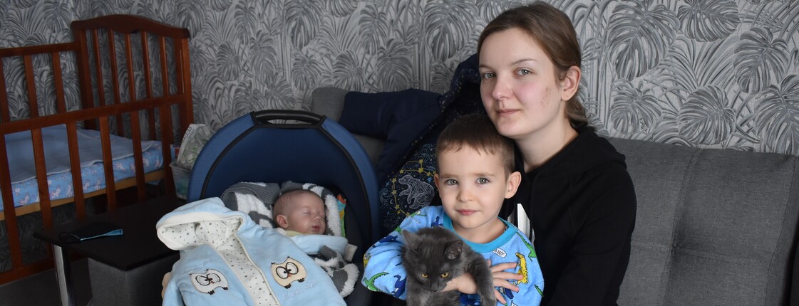 Ludmilla wohnt mit ihren zwei Töchtern, ihrem Mann und ihrer kranken Mutter in einer Holzhütte, 20 km von der Stadt Gomel entfernt. Die kleine Pension ihrer Mutter und das bisschen Geld, das ihr Mann, seit er seine Arbeit wegen Corona verloren hat, als Tagelöhner verdient, reichen zum Leben kaum aus. In diesem Winter plagen sie noch mehr Sorgen, weil sie im vierten Monat schwanger ist. Ludmillas Familie wurde in den letzten zwei Jahren im Rahmen der Caritas-Winternothilfe mit den lebensnotwendigsten Dingen unterstützt. Neben den Hilfspaketen mit Lebensmitteln bekamen sie Brennholz, damit sie den Winter hindurch ihr Haus, so gut es eben mit dem alten Steinofen geht, warmhalten konnten. Sie bekamen außerdem warme Bekleidung und Schuhe.
