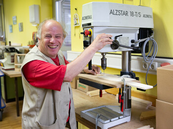 Jugendliche und Erwachsene arbeiten in den Werkstätten St. Pius.
