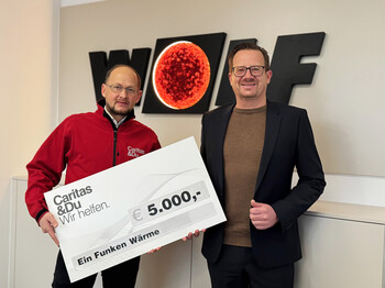 WOLF Klima- und Heiztechnik spendete 5.000 Euro für die Caritas-Aktion „Ein Funken Wärme“ und hilft damit armutsbetroffenen Menschen in Oberösterreich, ihre Wohnungen warm zu halten.